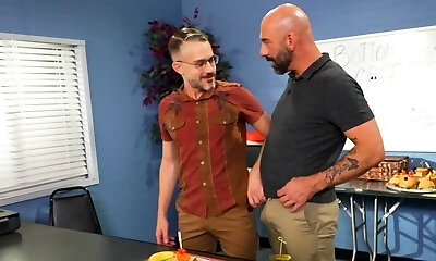 2 bearded fellwos do some hardcore anal fisting on the desk