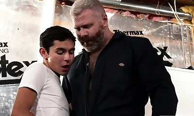 Barely legal gay stud seduces a mature stud into sucking his dick