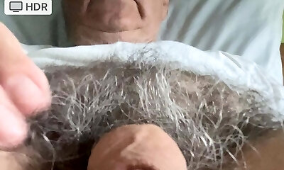 Cockam68 close-up masturbating his big hairy uncut dick with a great palms free jizz flow at the end