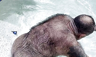 Outdoor pool gay plumb with a mature fellow and a teen poolboy