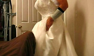 Black satin maxi long fetish ebony dress on crossdresser sissy cuckold bdsm gay tugging in a silk outfit